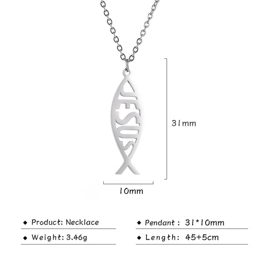Silver Jesus Fish Pendant Necklace
